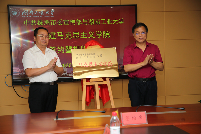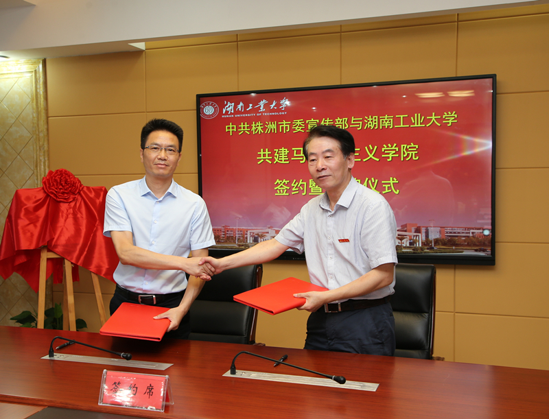 7月3日上午,中共株洲市委宣传部与湖南工业大学共建马克思主义学院签约暨揭牌仪式在湖南工业大学崇德楼340会议室举行。中共株洲市委常委、宣传部长聂方红,中共株洲市委宣传部副部长许志汉,中共株洲市委宣传部副部长、市社科联主席张莉,党委书记谭益民,校长刘扬,党委副书记韩清波,纪委书记、湖南省监委驻湖南工业大学监察专员张亚东,党委委员、宣传部长、马克思主义学院党总支书记(兼)易棉阳等出席仪式。仪式由张亚东主持。