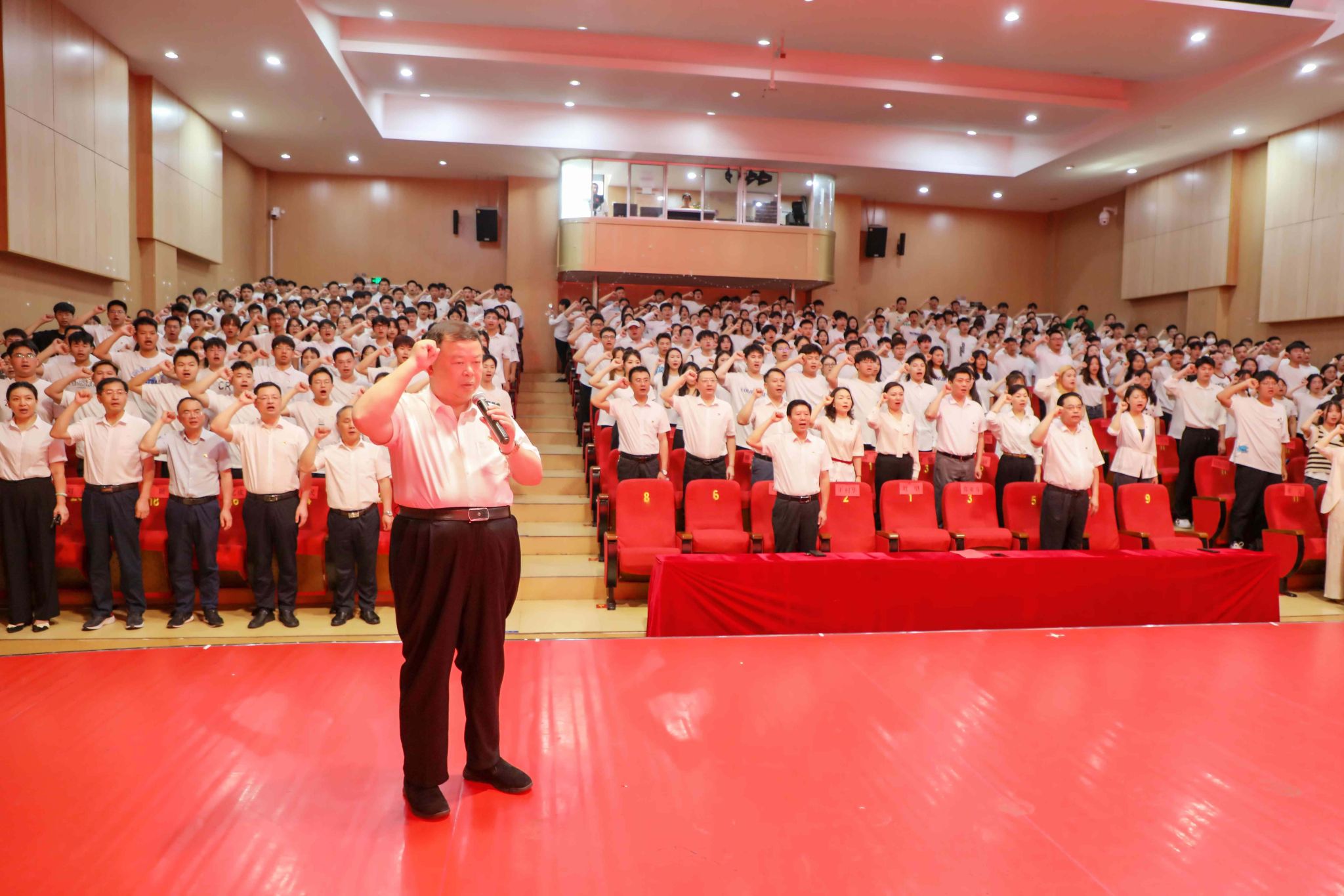 为庆祝中国共产党成立102周年、深入开展学习贯彻习近平新时代中国特色社会主义思想主题教育,进一步提升新发展党员的党性修养和党员意识,6月26日上午,我校举行新发展党员入党宣誓仪式。校领导刘望、王利华、张亚东、范晓阳出席,相关部门负责人、各二级党组织书记以及新发展的预备党员参加宣誓仪式。仪式由党委副书记王利华主持。